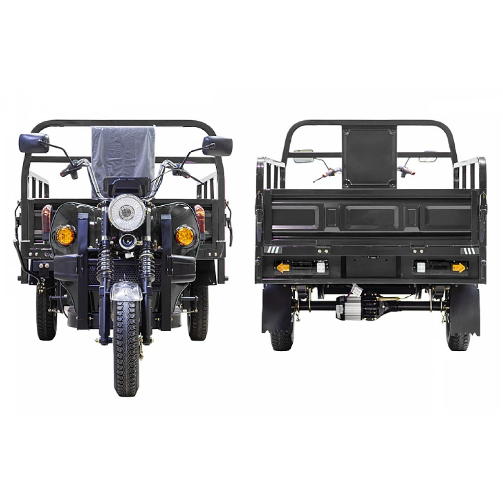 Электротрицикл оборудован гидравлической тормозной системой и амортизаторами, обеспечивающими плавность движение и отсутствие проблемой с преодолением препятствий. Транспорт имеет гарантию производителя (1 год).