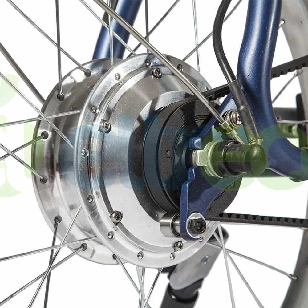 Высокая нескладная конструкция рамы не мешает при езде на дальние расстояния. Изготовлена из инновационного алюминия, выдерживающего максимальную нагрузку до 140 кг. Техника рассчитана на взрослых пользователей и подростков, простая в управлении. При соблюдении рекомендаций производителя не требует специального обслуживания. Велогибрид оснащен 250-Ваттным мотором, способным развивать максимальную скорость до 25 км/час. В сочетании с емкой батареей ездок без проблем может преодолеть на одной подзарядке дистанцию до 70 км пути. Батарея надежно зафиксирована в специальном блоке за подседельной частью.