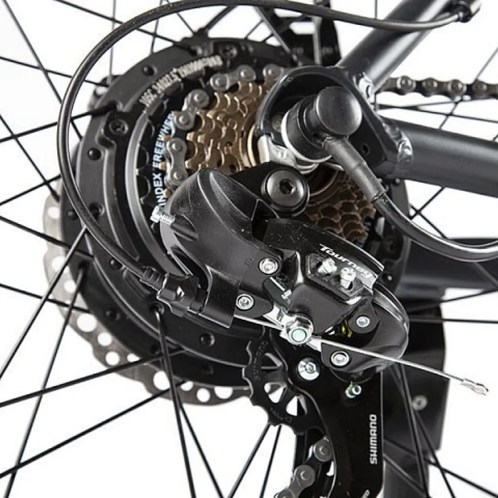 Электрический велосипедный двигатель мощностью 500 W в виде обычного моторного колеса. Имеет 5 уровней ассистента, способен разгоняться до 38 км/ч.